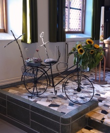 ![]() EEUWIGHEIDSZONDAG 26 november 2023 Vandaag gedenken wij de mensen die ons zijn voorgegaan en waarmee wij ons verbonden voelen. In de schikking staat de witte Lelie centraal, die verbeeldt eenheid en vergankelijkheid De 5 witte Rozen als symbool voor eerbied en herinnering van de overledenen. Het Gipskruid straalt zuiverheid uit. Het bloemstuk rust op de bladeren van de Vingerplant en verwijst naar Gods ondersteunende handen. Klimop voor Gods onvoorwaardelijke trouw aan de mensen. Het groene kleed, teken van hoop en verwachting. ![]() DANKDAG 1 november 2023 De schikking op deze dankdag van gewas en arbeid verbeeldt de veelzijdigheid van de oogst; allemaal verschillende groenten en vruchten opgestapeld tot een boom van overvloed. De handvormige bladeren onderaan de schikking beelden het ontvangen van al de rijkdom van de oogst uit, waarvoor we God mogen danken. Dankdag voor gewas en arbeid…. Herdenken in een moeilijke tijd. De wereld bloed uit duizend wonden Dit alles komt door onze zonden. Maar….. als we dan even terug denken heeft God nog heel veel willen schenken; Hij gaf zonneschijn en regen, was dat niet een grote zegen? Door Zijn Vaderlijke hand groeide het voedsel op het land. We kwamen niets te kort, er was dagelijks eten op ons bord. De Heer is zo lankmoedig en weldadig Hij is ook zeer barmhartig en genadig. Hij was bij ons in nood en pijn en daarom moet het Dankdag zijn. ![]() STARTZONDAG 16 september 2023 Het thema van dit nieuwe kerkelijk seizoen is “Ga mee” Het moedigt mensen aan om deel te nemen aan de wereldwijde beweging van geloof, hoop en liefde die God heeft gestart. De bekende geloofssymbolen van geloof, hoop en liefde worden gebruikt voor deze symbolische schikking. Dankbaar voor Een hart vol liefde Een kruis van genade Hoop als anker De zonnebloemen herinneren ons eraan om vreugde te omarmen, het licht op te zoeken en ons staande te houden bij tegenslag. We starten het nieuwe kerkelijk jaar op de fiets, ga je met ons mee? Gemeente zijn Elkaar vasthouden in vreugde en pijn Elkaar steunen er voor elkaar zijn Elkaar zien en blij begroeten Elkaar brengen aan Jezus voeten. Elkaar bemoedigen als het moeilijk is Elkaar bijlichten in de duisternis Elkaar omarmen hé, ik geef om jou Elkaar verwarmen te midden van de kou. Zo’n kring van mensen heet gemeente Zo’n kring van harten laat je weten Dat God een God van Liefde is Te midden van tekorten, zonden en gemis. Wilt U, Heer het centrum zijn van deze kring Begin maar klein en laat het groeien Zodat we doen Wat bij U past. Jolanda Holleman-Kropff ![]() 25 jarig jubileum ds. Mol, 11 juni 2023 Vandaag vieren we dat ds. Jurrien Mol 25 jaar predikant is in onze gemeente Opeinde, Nijega, de Tike. De bloemen verbeelden de gemeente in al zijn veelzijdigheid in donkere en lichte kleuren, wat verwijst naar verdrietige en vreudevolle dingen die we samen als gemeente beleven. De bloemen staan op een koningsblauw kleed dat verwijst naar het koninkrijk van God. Het touw maakt de verbinding van Gods woord naar de predikant. De hedera staat voor het vertrouwen in God en de verbondenheid met elkaar. Het boeket gaat als felicitatie naar de familie Mol. Op tafel en daaronder zien we persoonlijke atributen die een inkijkje geven in het privé leven van onze predikant. De dominee, een schaap met zeven poten? Hoe ondankbaar in dit land is het vak van predikant. Altoos eist men van zo’n man zeven poten van een schaap. Gaat hij veel op huisbezoek ? dan.. “dominee leest nooit een boek" Maar studeert hij nog steeds verder, heet íe "leraar” en geen "herder" Als hij 't leven ernstig neemt, is hij "stijf" en "wereldvreemd". Is hij vlot bij spel en sport dan komt hij waardigheid tekort. Legt hij zich - met mate – toe op liturgie 't heet een "Rooms gedoe" Maar zo niet, dan heet het weer : "geen gevoel voor stijl en sfeer". Is hij voluit theoloog, prompt zegt men: "hij grijpt te hoog". Tracht hij populair te spreken, men zegt: "praatje, maar geen preken" Wat hij laat of wat hij doet, nooit en nimmer is het goed. Te allen tijd rust op zijn werk kritisch oog van volk en kerk. Heer , wilt u onze predikant kracht en wijsheid geven, bij bestuderen, preken, en hoe we als christenen mogen leven. ![]() PASEN, 9 april 2023 Op deze paasmorgen zien we een schikking met witte bloemen in bloei. De witte kleur symboliseert feest en een nieuwe begin. Het groen verbeeldt het nieuwe leven dat we met Pasen mogen ontvangen. It is folbrocht ’t Is Peaskefeest en ik bin frij Want Jezus sei: it is folbrocht ’t Is Peaskefeest en ik bin frij Mei syn bloed hat Hy my kocht It djipste wurd is sprutsen Oan it krús op Golgota Ferlossing en fersoening Kamen ús minsken samar ta Syn dea betsjut foar ús it libben Syn ein, foar ús in nij begjin Mar ’t rykste is dochs de oerwinning Op Peaskemoarn, ’t bringt ús gewin Net folle wurdt der fan ús frege In inkeld: folgje My Gean yn it fuotspoar fan de Heilân Dat jout rêst, dat makket frij ’t Is Peaskefeest en ‘k fiel my frij Jezus hat de dea oerwûn ’t Is Peaskefeest, ‘k bin wierlik frij En foar altyd mei de Hear ferbûn STILLE ZATERDAG, 8 APRIL 2023 ![]() ![]() GOEDE VRIJDAG,7 april 2023 Op Goede Vrijdag staat het kruis centraal. In de schikking deze keer geen traditioneel kruis, maar een Gaffelkruis waarvan de armen schuin naar boven gericht zijn door middel van de kronkeltakken. De groene Hedera verwijst naar Gods trouw. Goede? Vrijdag Al die spot en al die haat, de gruwel die zo tegenstaat, de eenzaamheid en het verdriet, de loochening “ik ken Hem niet”. Al dat geweld en al die pijn: moet dat nu “Goede” Vrijdag zijn? Het biddend worstelen met God, de harde slagen van het lot, het bloedvergieten zonder end, het kwaad, waar je maar niet aan went, gespijkerd aan een triest bestaan: komt “Goede” Vrijdag daar vandaan? In eenzame verlatenheid hangt, in het centrum van de tijd, de drager van het wereldlot, de Christus, afgezant van God, om na drie dagen op te staan: is daarom Vrijdag “Go